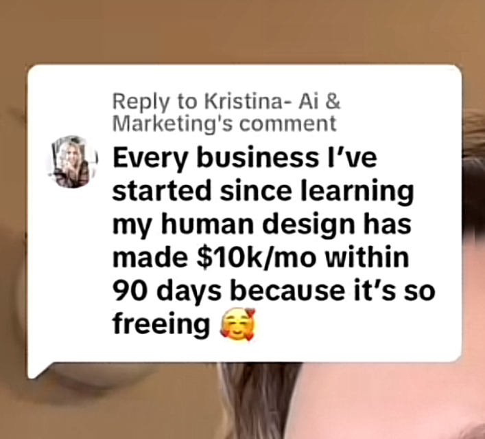 • My proven frameworks from selling over 1000 Human Design reports, selling 100+ offers, growing an audience of 50,000+, and building a list of 10,000+ subscribers
